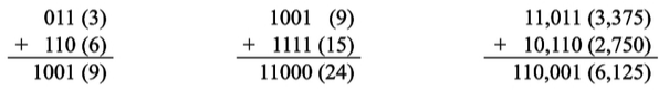 b) 011,101 + 010,010