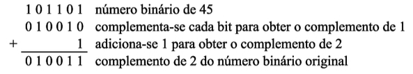 O complemento de 2 de um número binário é obtido em dois passos: