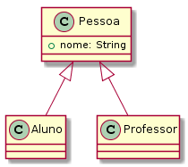 Pessoaé superclasse deAlunoeProfessorAlunoé subclasse dePessoaProfessoré subclasse dePessoa