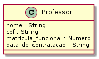 Continuando o contexto do exemplo anterior podemos representar a classe Professor da seguinte forma:
