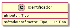 - a primeira parte (obrigatória) contém a identificação (nome) da classe (novamente, começando com letra maiúscula)